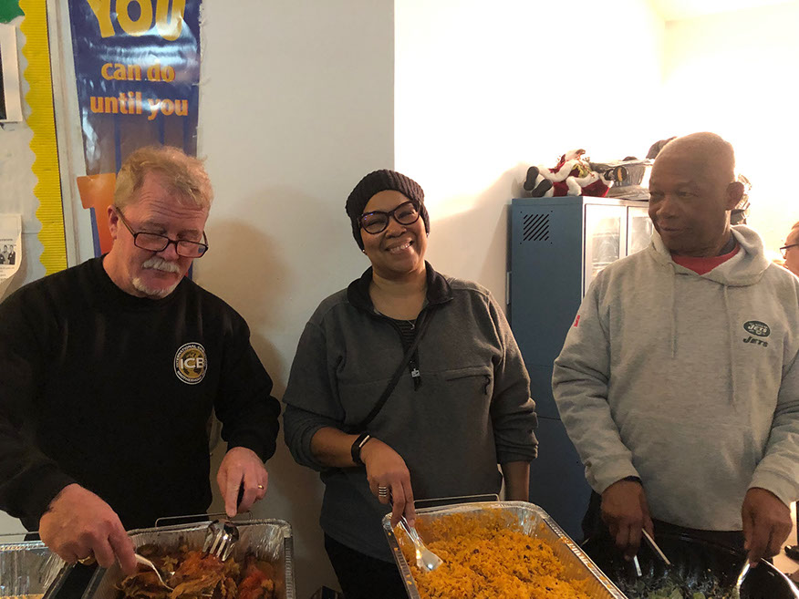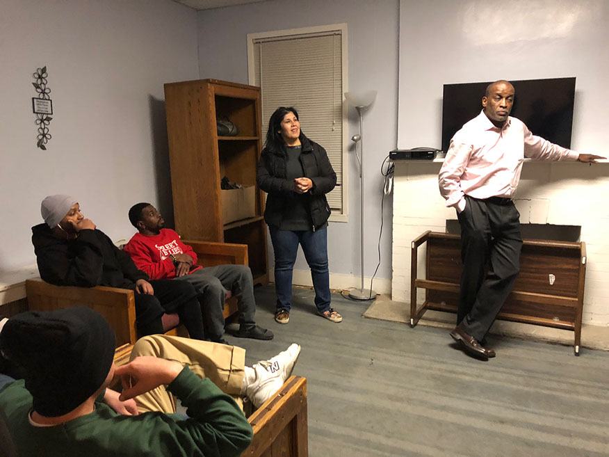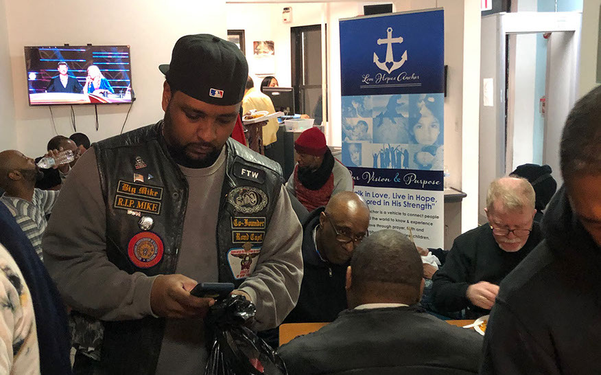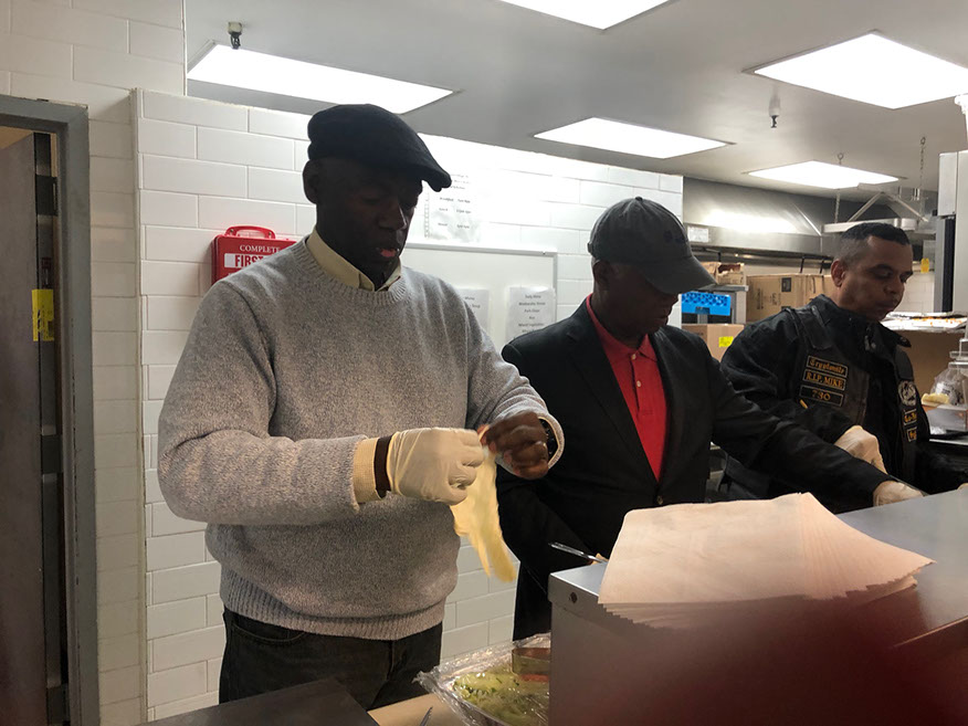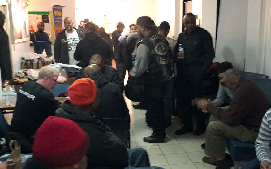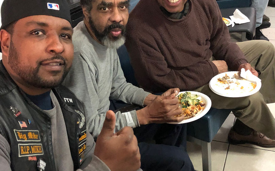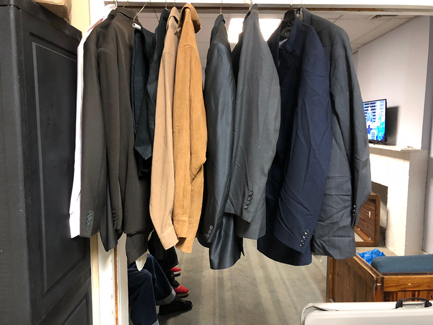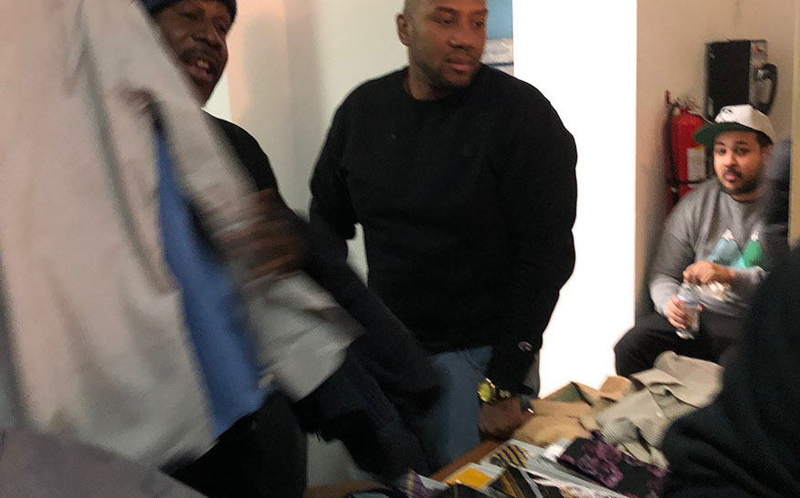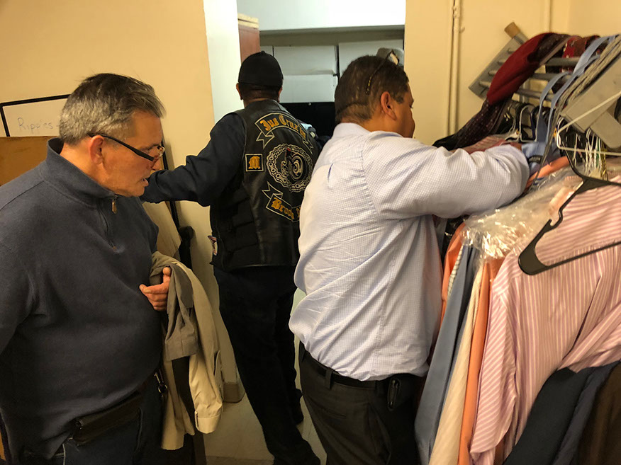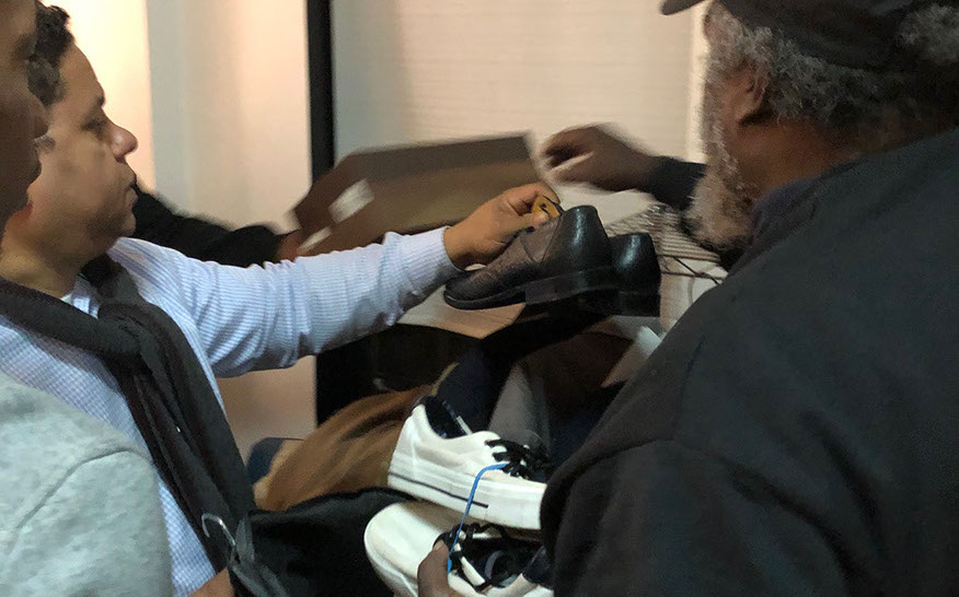 We provide barbers to provide free haircuts and shaves, men’s dress clothing for upcoming employment interviews, a hot catered meal , and gift bags filled with essential toiletries.